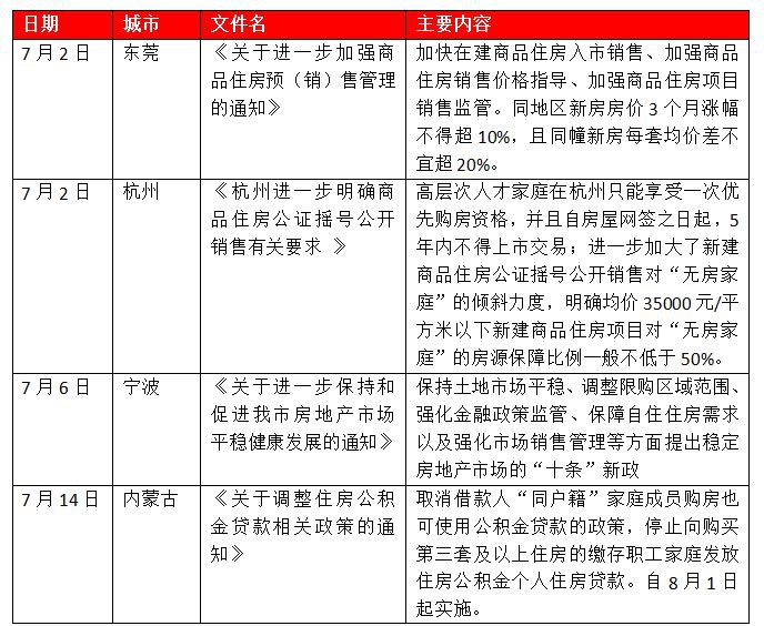 据不完全统计,今年7月份,包括杭州、东莞、宁波、内蒙古、郑州、深圳、南京等7个房价有所上涨的城市开始出台房地产调控收紧政策。